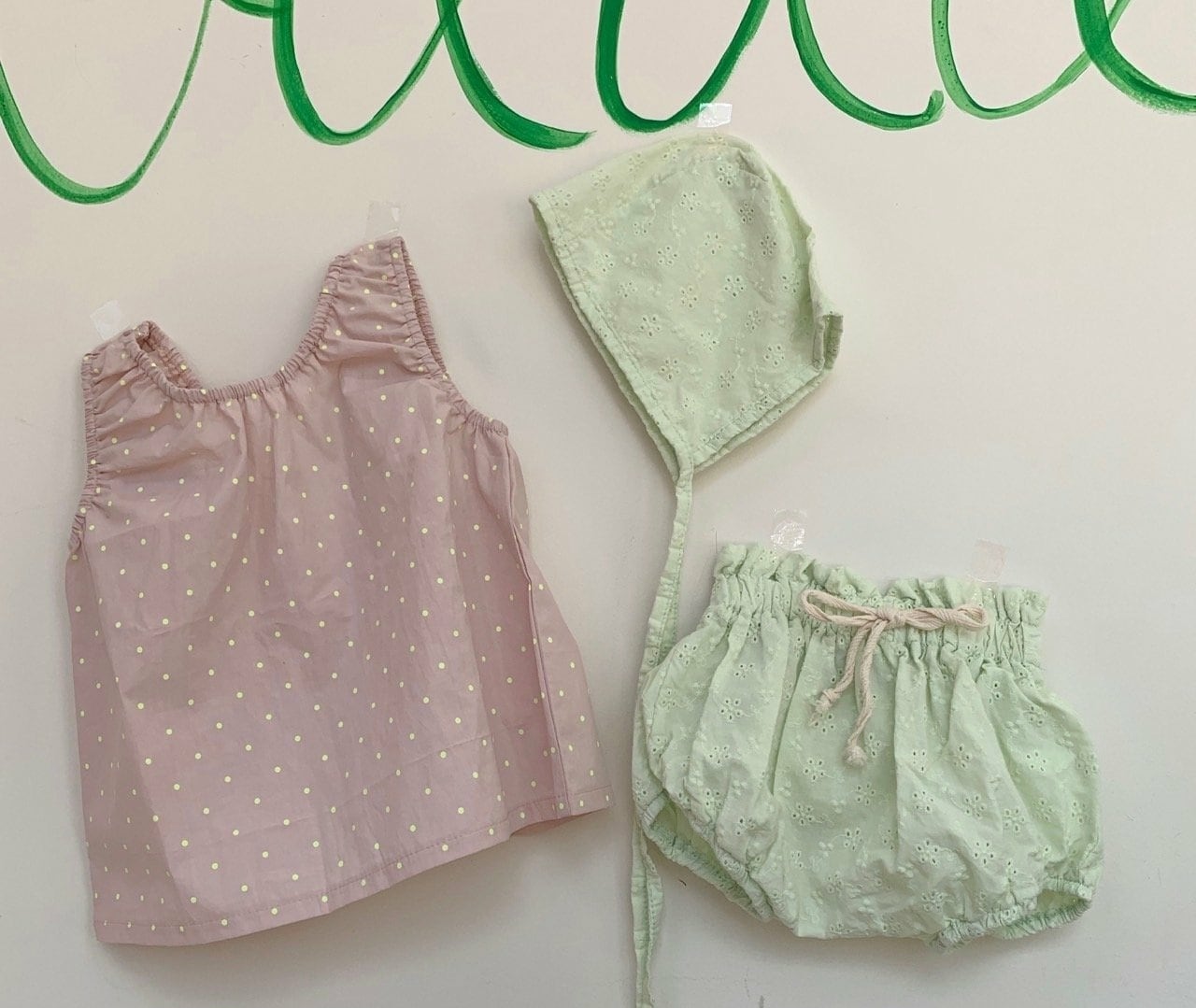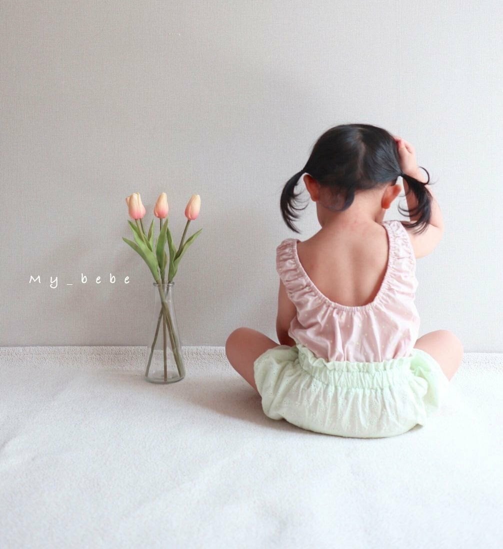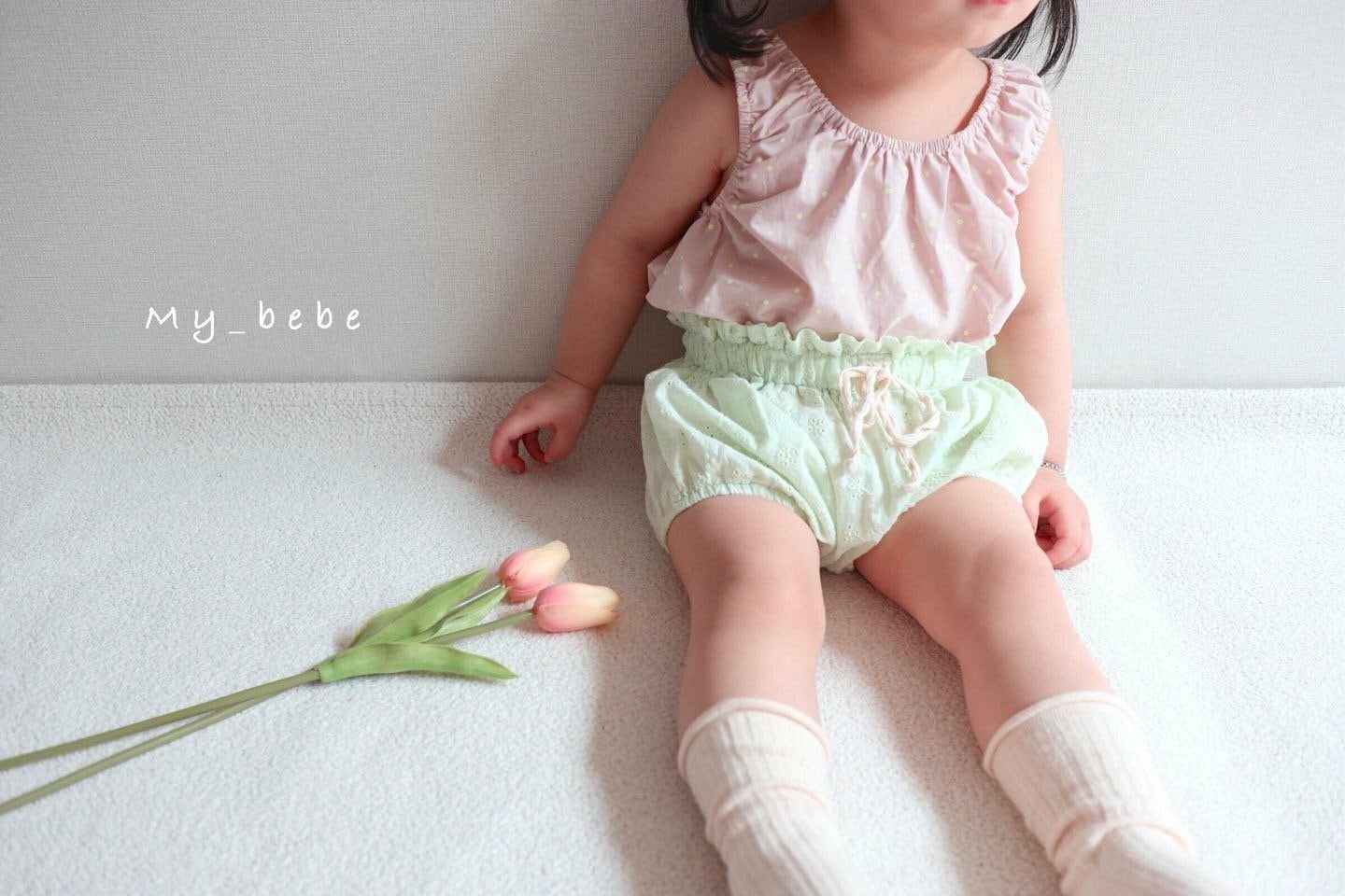 均一セール|メロン70.80|Baby|パンチングフラワーブルマボンネットセット|mybebe