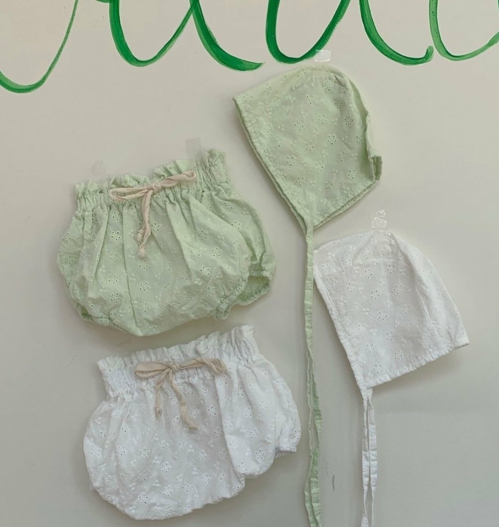 ◇商品名:パンチングフラワーブルマボンネットセット